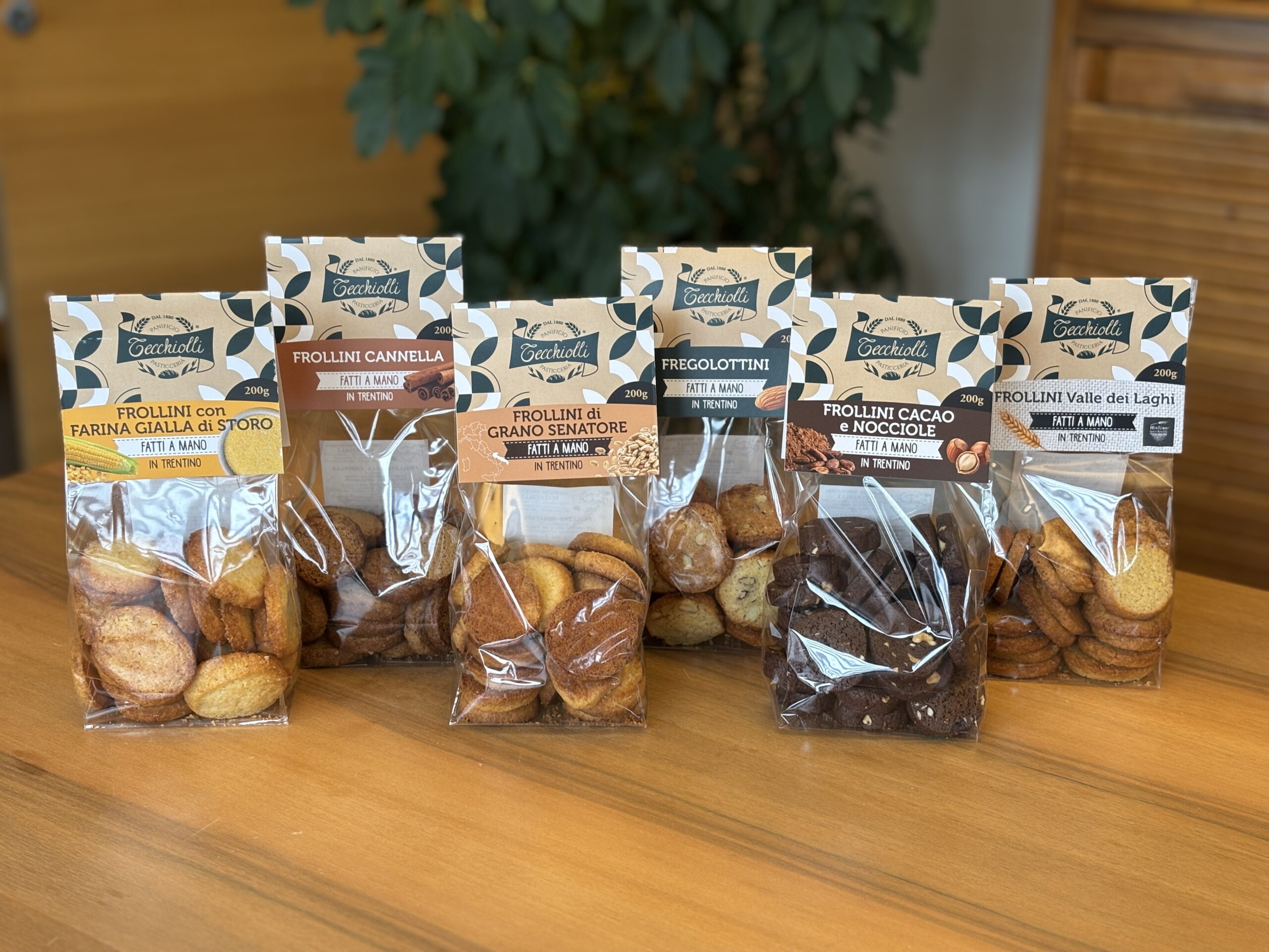 • Frollini Valle dei Laghi: il classico e intramontabile frollino al burro reso unico grazie alla farina a km0 del nostro Molino, ottenuta dal grano coltivato nella Valle dei Laghi.