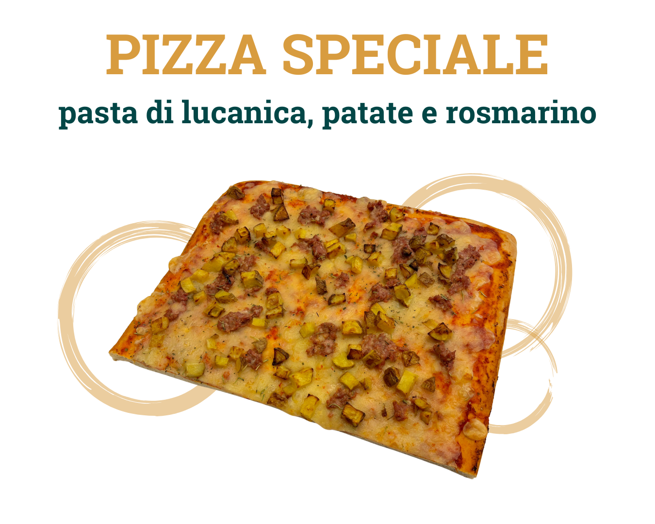 A FEBBRAIO, il nostro team guidato da Francesco, nostro collaboratore che si occupa del reparto di focacceria e pizzeria, ha deciso di proporre la pizza con patate, lucanica e rosmarino.