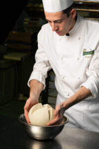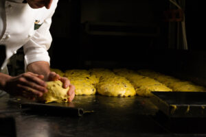 Tre giorni di paziente lavorazione, un impasto vivo con lievito madre naturale, e mani esperte che lo modellano lentamente, come una volta.