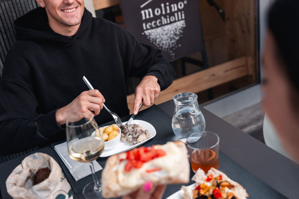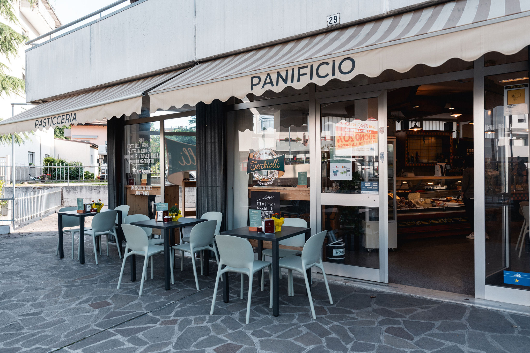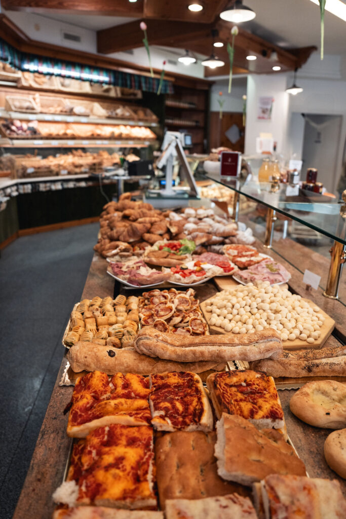 Angelina’s, il nostro punto vendita a Trento città, prende il nome da nonna Angelina, figura centrale nella nostra storia, che già negli anni ’20 portava avanti con determinazione il valore del lavoro e della famiglia. Questo spazio è la nostra visione di bakery moderna: una proposta che unisce dolce e salato, caffetteria, pasti veloci, gastronomia sul posto e d’asporto, un banco di formaggi e salumi curato con attenzione e una selezione di vini e bibite per ogni momento della giornata.